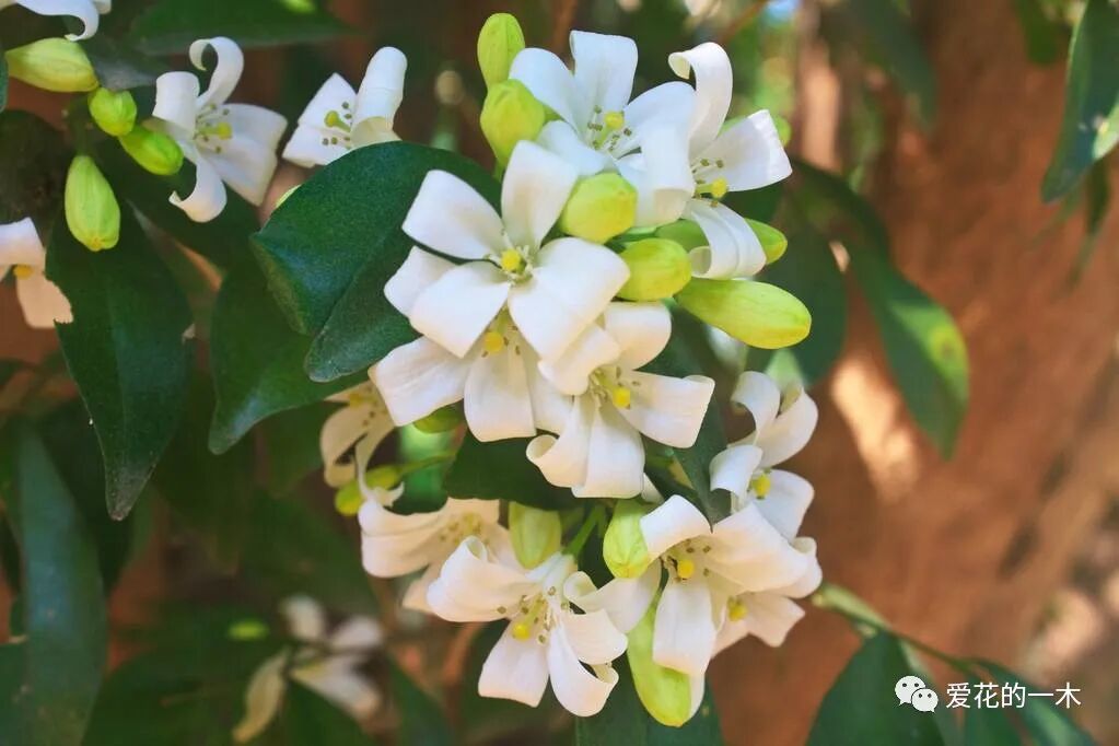 九里香也叫七里香,它的香味是十分浓烈的,并且不仅它的花朵有香味,就连它的叶片也具有淡淡的芳香,让人闻起来感觉沁人心魄。这种植物喜欢阳光,比较怕干旱,所以养护时浇水一定要足够,并且要多施肥,才能让它开花更多。
