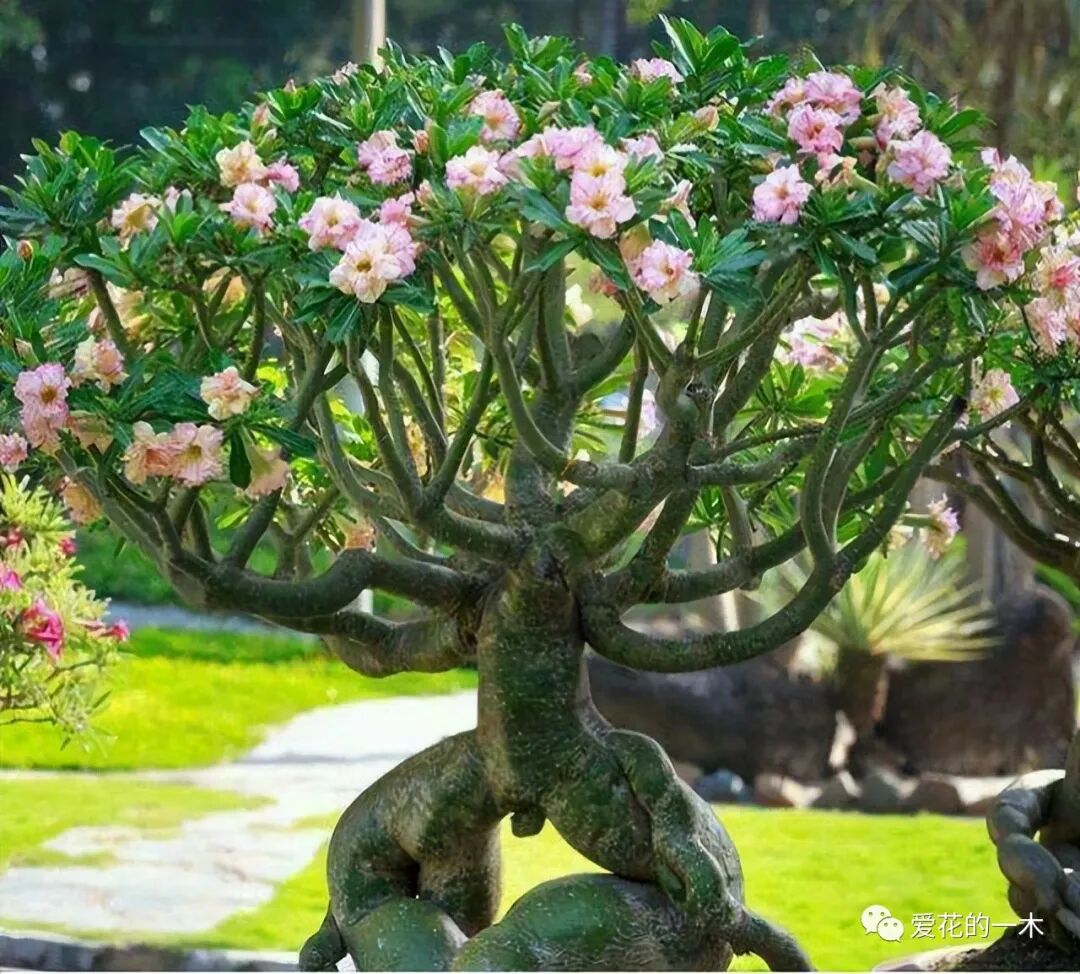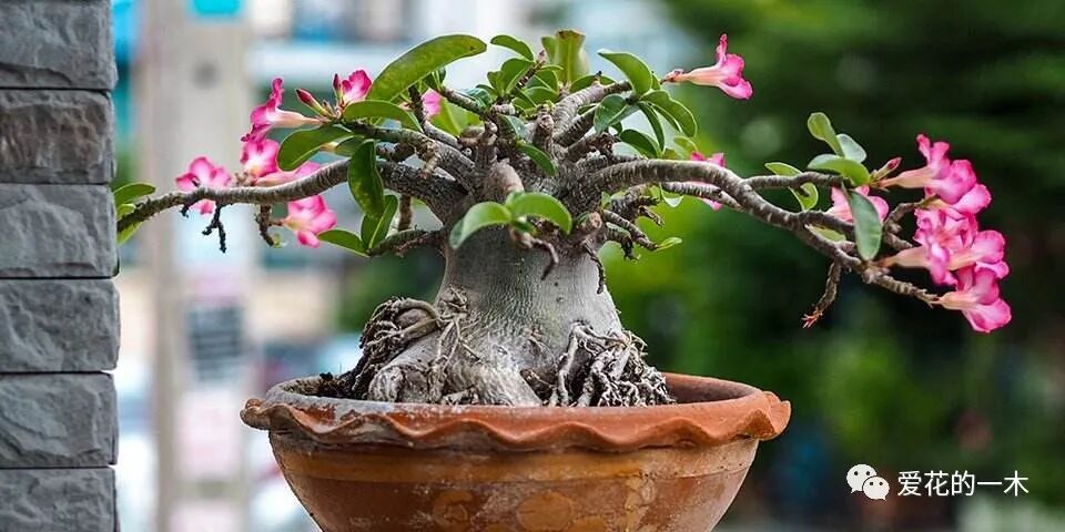 沙漠玫瑰的根茎很特别,很美丽,它还有一种很有特色的花朵。它整体长得很奇怪,枝条很粗,就好像是一条象腿,所以又被称为“象脚上的花朵”,树根很难看,圆滚滚的肚皮更是光溜溜的,形状也是千姿百态。不过,这种植物能开花,只要保养好,五月至十二月都能持续开放。