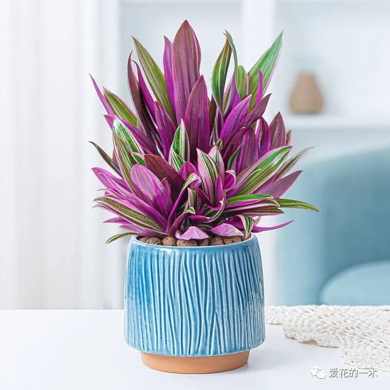 紫露兰的叶片颜色与油画婚礼比较类似,也是一种渐变色,但是它的叶片属于挺拔的类型,看上去更加有气质。养这种植物根本不需要等它开花,它的叶片就已经足够美丽了,并且它还十分耐荫,适合在客厅养护。