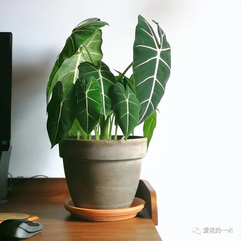 绿天鹅绒海芋的叶片呈现出高档的深蓝色,中间夹杂着白色的鲜条,看上去十分有档次。这种花卉确实也是一种贵族花卉,一盆动辄上百元,并且它还十分好养,不需要多少阳光,很适合摆放在客厅里观赏。