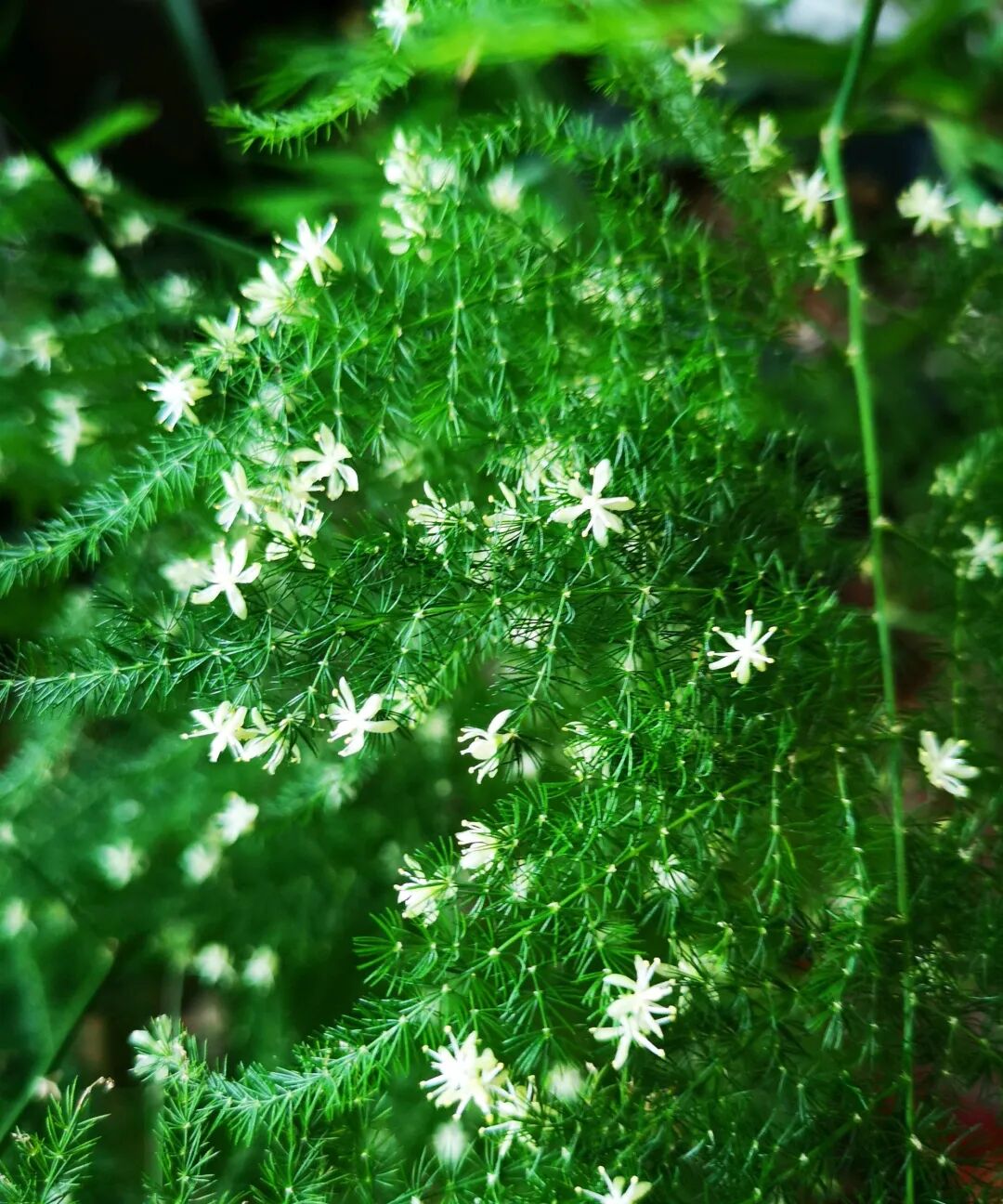 养文竹的花友极多,但是很多人都不知道,文竹这种植物也是一种会开花的植物,因为大多数人都是为了观赏它优雅的叶片而掏腰包的。殊不知,其实文竹也能开花,不过却非常少见,它能开出漫天繁星般的小白花,十分壮观。