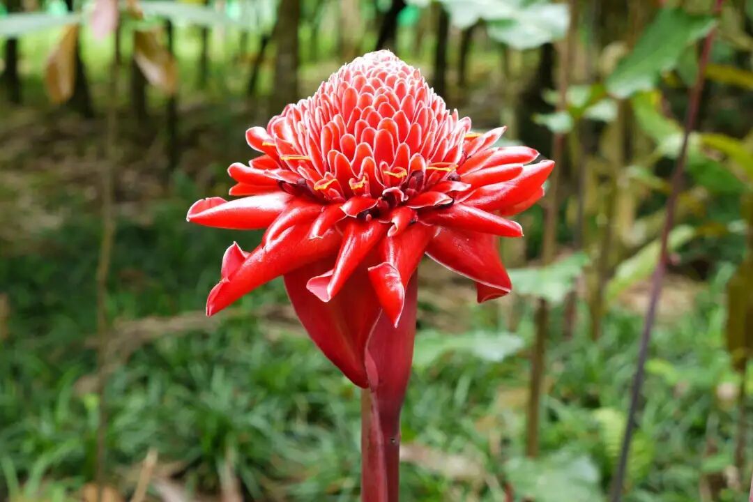 火炬姜开花的时候,就好像一朵冲天而燃烧的火炬一样,我本人养过一株,开花的时候颜色红彤彤非常鲜艳,花朵硕大无比的十分霸气。这种花卉是属于姜科的植物,养护难度并不大,所以只要大家喜欢也是可以买回家养一盆试试的。