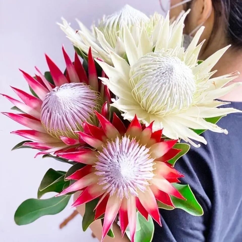 帝王花在国内非常少见,但在世界范围内,帝王花是高档鲜花的代表,国外很多花店里都可以买到帝王花的花束,一束花可以抵得上我们这边三束玫瑰花,因为它不仅价格昂贵,花朵的大小也是很巨大的,霸气十足,漂亮极了。