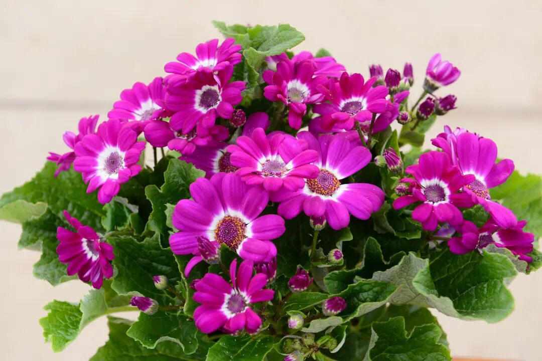 瓜叶菊的花朵硕大,花量居多,买回家的时候看起来满满一大盆,特别漂亮,所以很多人都喜欢买它。但这种植物买回家以后,一般都不会超过半年就养死了,几乎没多少人能让它再次开花。