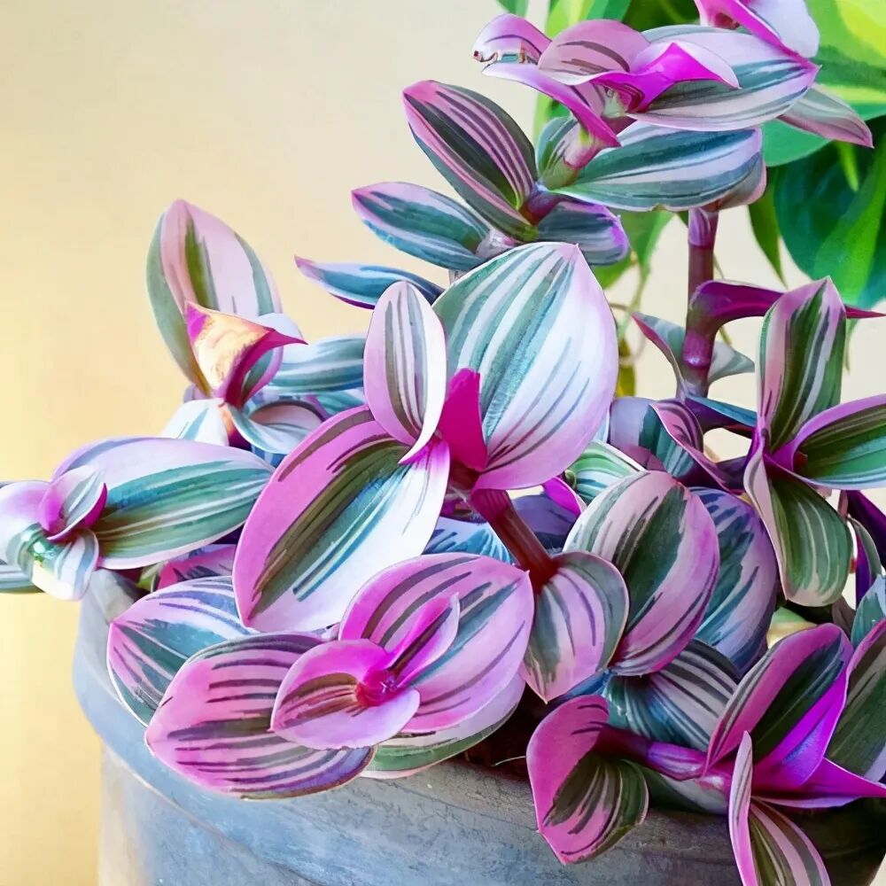 油画婚礼的叶片呈现出紫色的渐变,在阳光下交相辉映,美丽极了,这种特质也一度让它成为网红花卉。其实这种花卉属于吊兰的一种,它的繁殖能力极强,几个月就可以长满花盆,随便剪下一段就能独立繁殖。