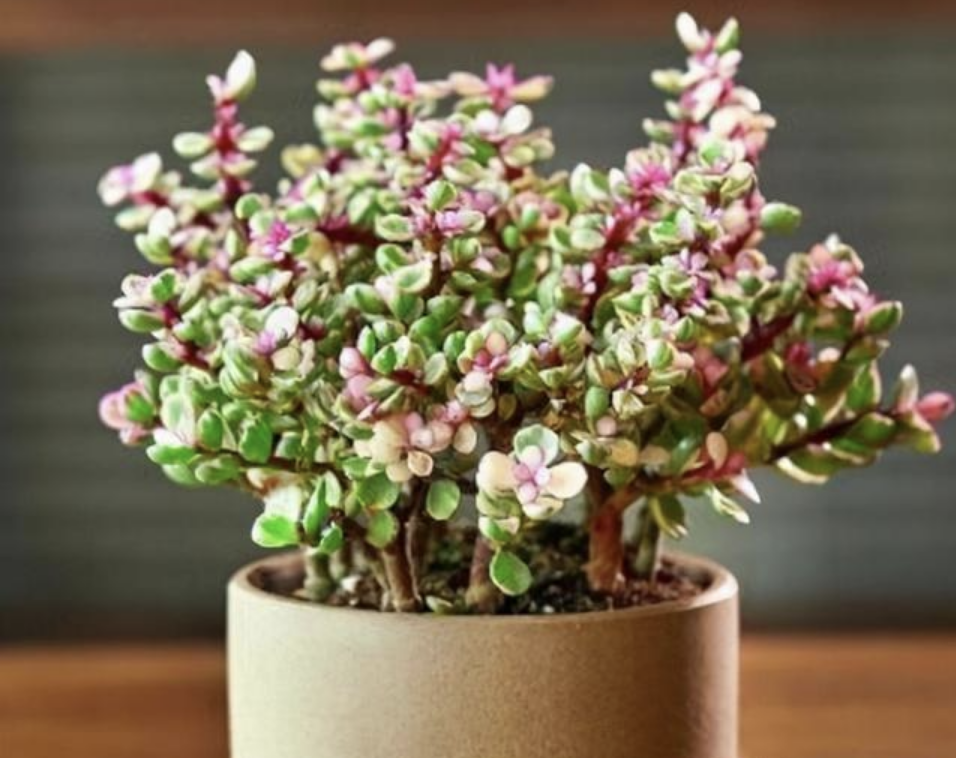 现在市面上卖的金枝玉叶,基本上都是顶端染色的,红色的好像花朵一样特别漂亮。这些金枝玉叶的价格都不高,因为这种植物太会生长了,随便剪下一段枝条,插到土壤里就存活,而且它的生长速度也很快,一年就能长爆盆。