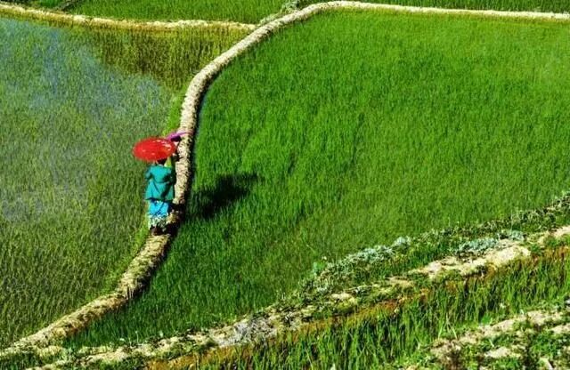 因为地处山区,农村的田边每年都会新垒起一层田埂,这样可以防止田里的黄鳝打洞,而导致田漏水。同时方便种植一行黄豆。