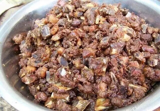 这也是自己养的猪,现杀的,剔下来的排骨,炸至金黄的排骨看上去就特别有食欲