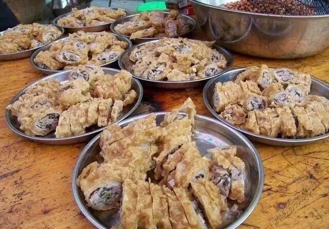 蛋饺,把鸡蛋做成薄皮里面卷上新鲜的猪肉,这是一道特色菜