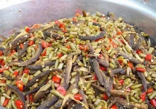 酸豆角炒泥鳅,这泥鳅是在本地市场买的,是专门捉泥鳅的人那里,一斤30元,野生的。这味道就不用说了,肉质非常紧质带有一点点甜味。主人家下了血本了。