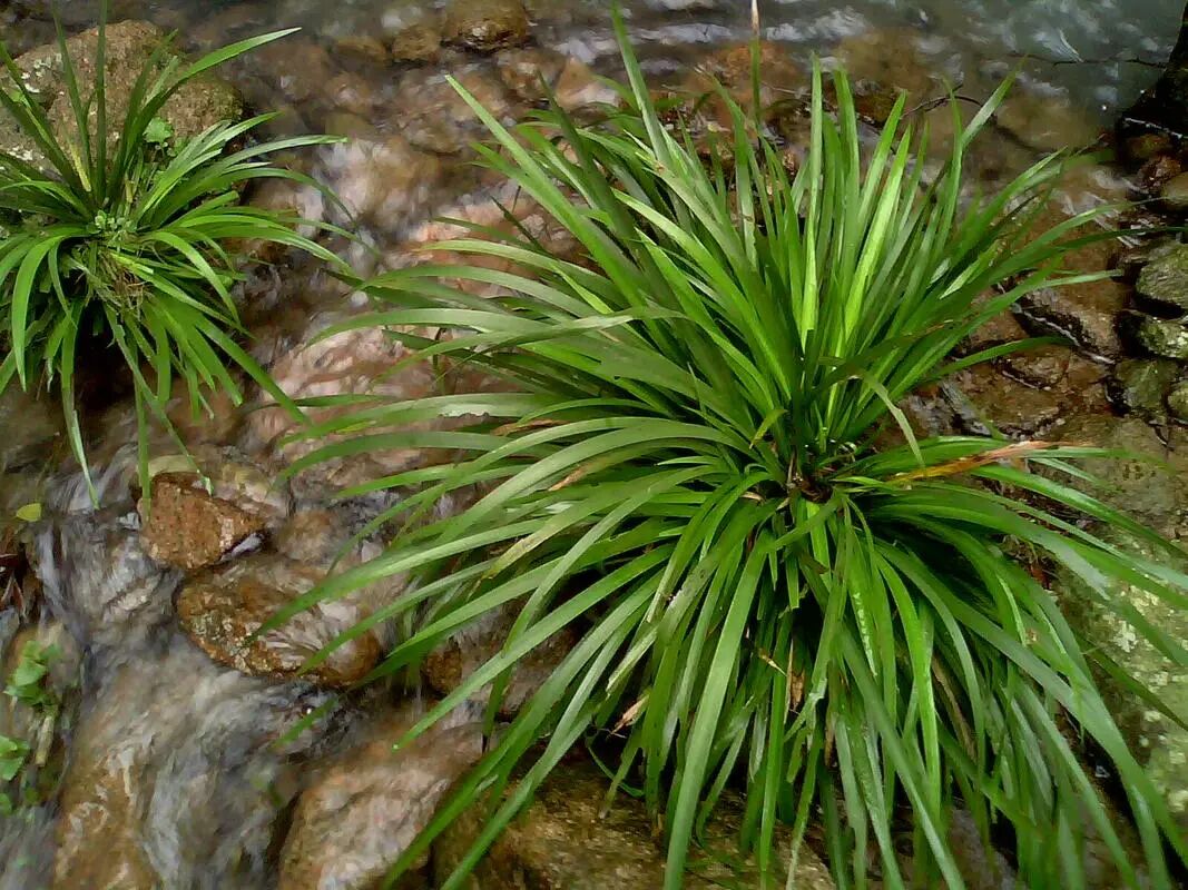 其实也是非常简单的,我们走在溪边的时候,看到一些小石头上长有这种石菖蒲,而且造型漂亮的,我们也可以把它采下来作为盆景,假如说我们家里有假山,放一棵石菖蒲在这边,这样立起来是不是很有观赏价值,而且它所散发的味道,让我们心旷神怡,精神气爽。