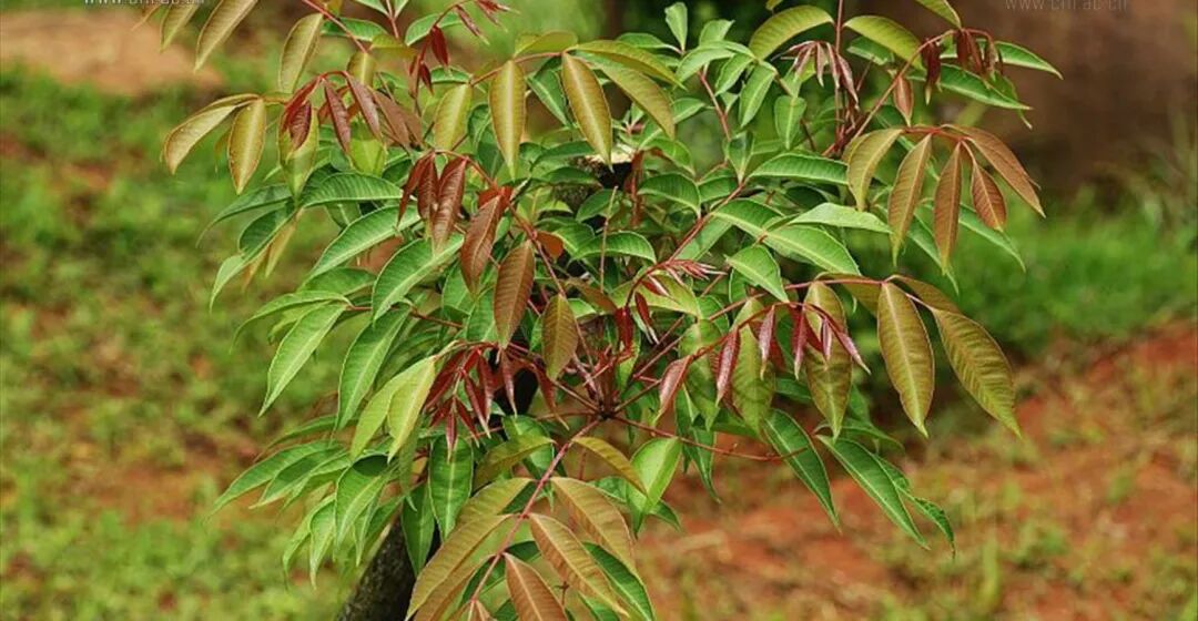 漆树在春天新长出来的嫩叶尤为突出,它有白色的短绒毛,而且非常鲜嫩,枝条是红褐色,叶片为对生生长,也有复生生长,比较特殊,它叶片的纹路也非常清晰,但它老一点的枝条它是黄褐色。