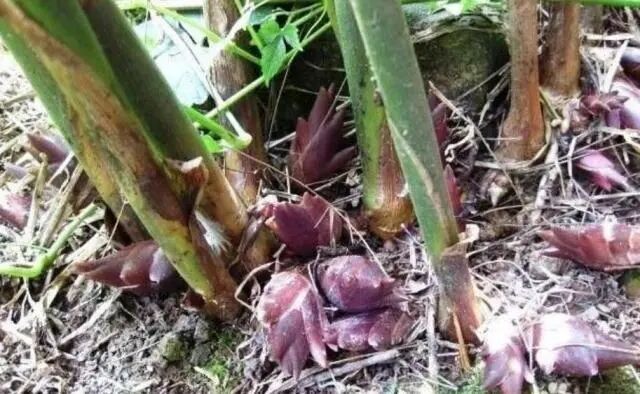 我们知道,生姜都是长在地下的,而阳荷的话,恰恰相反,阳荷是长在地上的,到了每年六七月份,在阳荷苗的根下,就会像竹笋一样冒出小小紫色的笋尖,它有特殊香味,形状如鸡蛋般,但比鸡蛋要小好几倍,是一种很好美味。