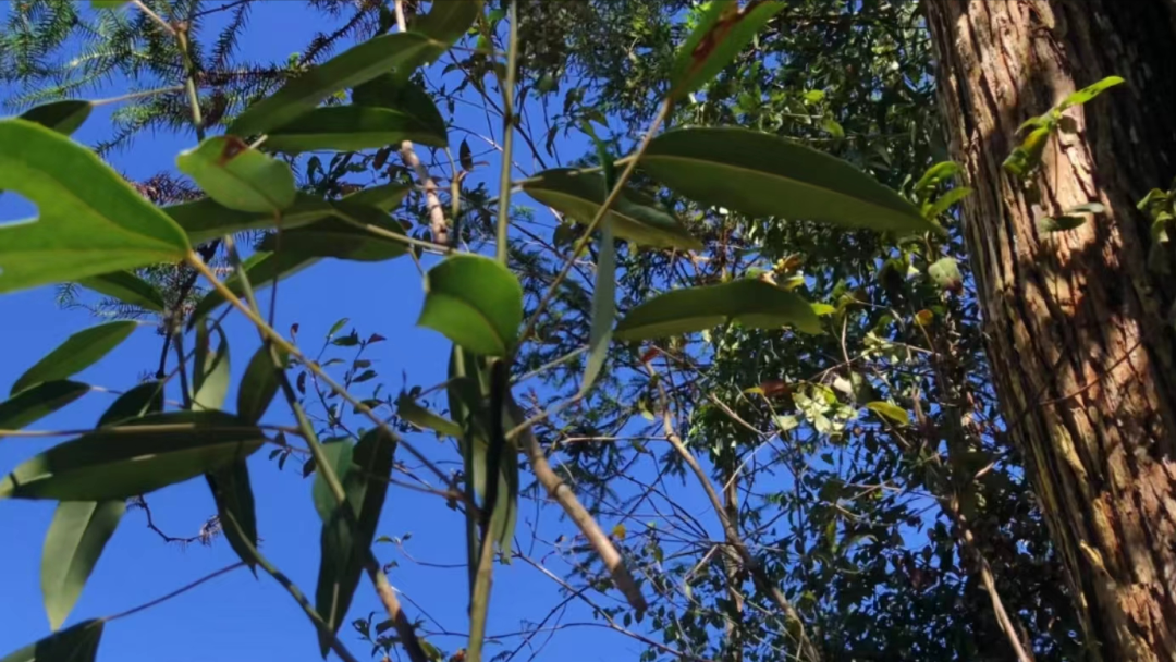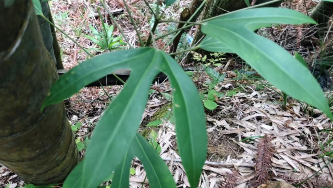 大家看到竹林下方的那个植物了吗?叶子长得有三个裂片的,它就是今天的主角了。
