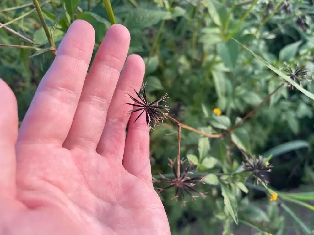 所以说鬼针草也是一种可食可药用的植物,很多朋友对这种植物的记忆往往是沾满你的裤腿,因为它的硕果上面有两根芒刺粘到你的衣服上,很难拔下来,所以说很多人都讨厌这种植物,殊不知把它利用好了,可以解决我们生活中非常多的烦恼。