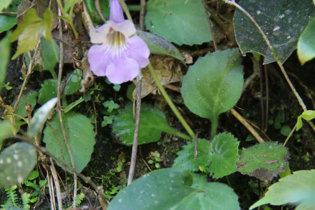 相信这种植物可能很多人也是第一次见,在我们当地有些人会称它为石螃蟹,石蜈蚣等等,非常多的别名,它的中文学名叫蚂蝗七,它是属于苦苣苔科多年生的草本植物,它整个株型比较矮小,叶片是挨着这个石壁而生长,花型比较大,整株看起来非常的可爱,观赏价值还算是比较高。
