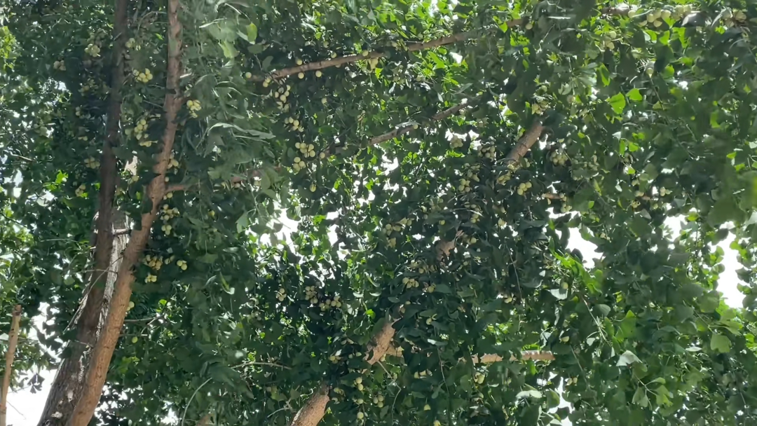 摘两片叶子给大家仔细的看一下,太高了,看一下它的叶子,还是非常有特点的,像扇子一样的,纹路还算比较清楚一点,然后它的整体就像这个芭蕉扇一样的,这种植物相信很多人都有见过,像公园,还是比较多的,这种植物是一种非常好的药材,它的学名是叫做银杏树。