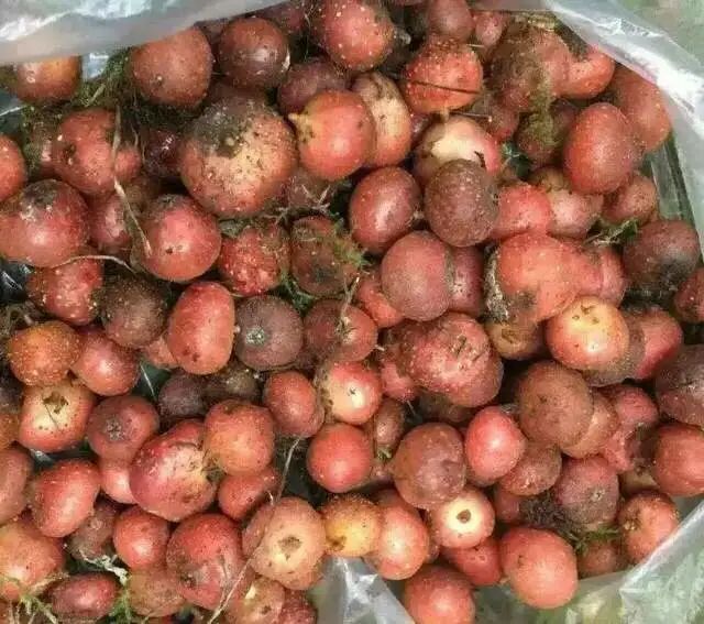 果实开始的时候是青色的,不能吃,酸得要命,但是果实长得如图橙红色时就可以吃了,吃起来酸甜。它的挂果量还是非常大的。一棵小小的树能采摘几百个果子。