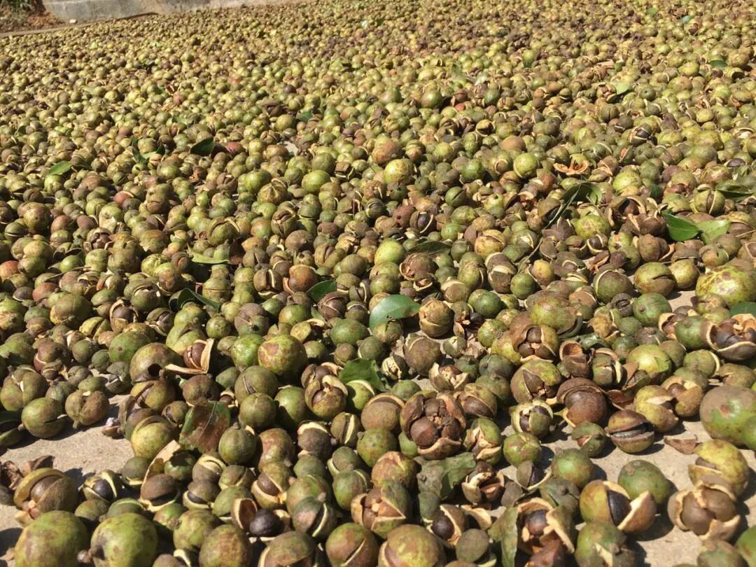 这时候每棵树大概能产果20斤左右,但是剥去果实的外壳后,可以拿来榨油的茶籽最多就剩五六斤,而一斤茶油则需要三至六斤茶籽。