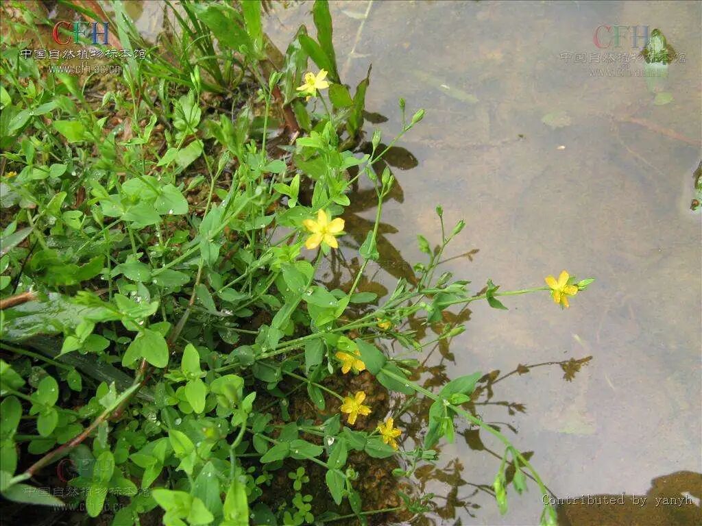 田基黄我们常常可以在田边、沟边,草地以及在荒地的地方可以看到它,最常见的就是在田埂边上了,我们眼前看到的就是田基黄,今天看到的这几棵,它是生长在这个路边上,它的学名是叫地耳草,是藤黄科金丝桃属的植物,它的叶子是没有柄,直接生长在这个茎上,那它叶片通常是这种卵形或者是卵状三角形,有一些是长型或者椭圆形的。