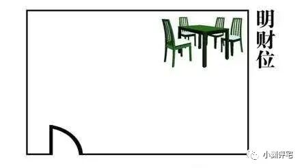 方位:进门后与门相距最远的那个角落。比如门开在东北角,明财位就在西北角。如果门开在正中央,则两个角都是明财位。比如门在正北方,则东南角、西南角都是明财位。