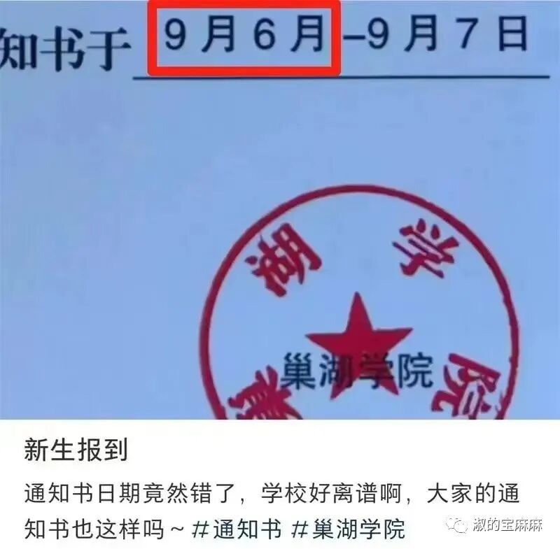 当别的考生收到录取通知书喜气洋洋准备去报到的时候,巢湖学院的大一萌新却不知何去何从,原因是通知书上将报到时间“9月6日”错误印刷为“9月6月”,这也未免太心塞了吧?