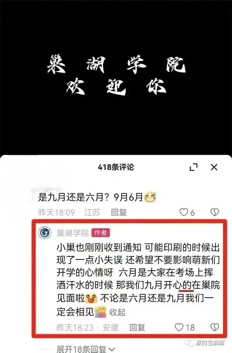 巢湖学院的官方账号在给粉丝留言的时候承认这是印刷的时候出现了一点小失误,希望不要影响萌新们开学的心情。