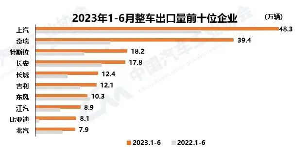 上汽依然是表现最亮眼的,主要是上汽旗下的品牌众多,所以出口也多达到了48.3万辆,同样作为国家队的奇瑞汽车出口39.4万辆,依靠海外高出口量,奇瑞汽车的销量也是节节攀高!