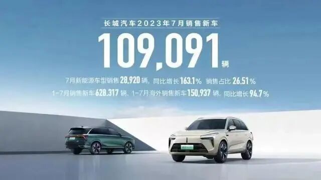 长城汽车7月份销量再次突破十万辆,其中新能源汽车销量将近3万辆,各大品牌新能源车型销量全面开花,这让我们又看到了曾经的长城汽车。
