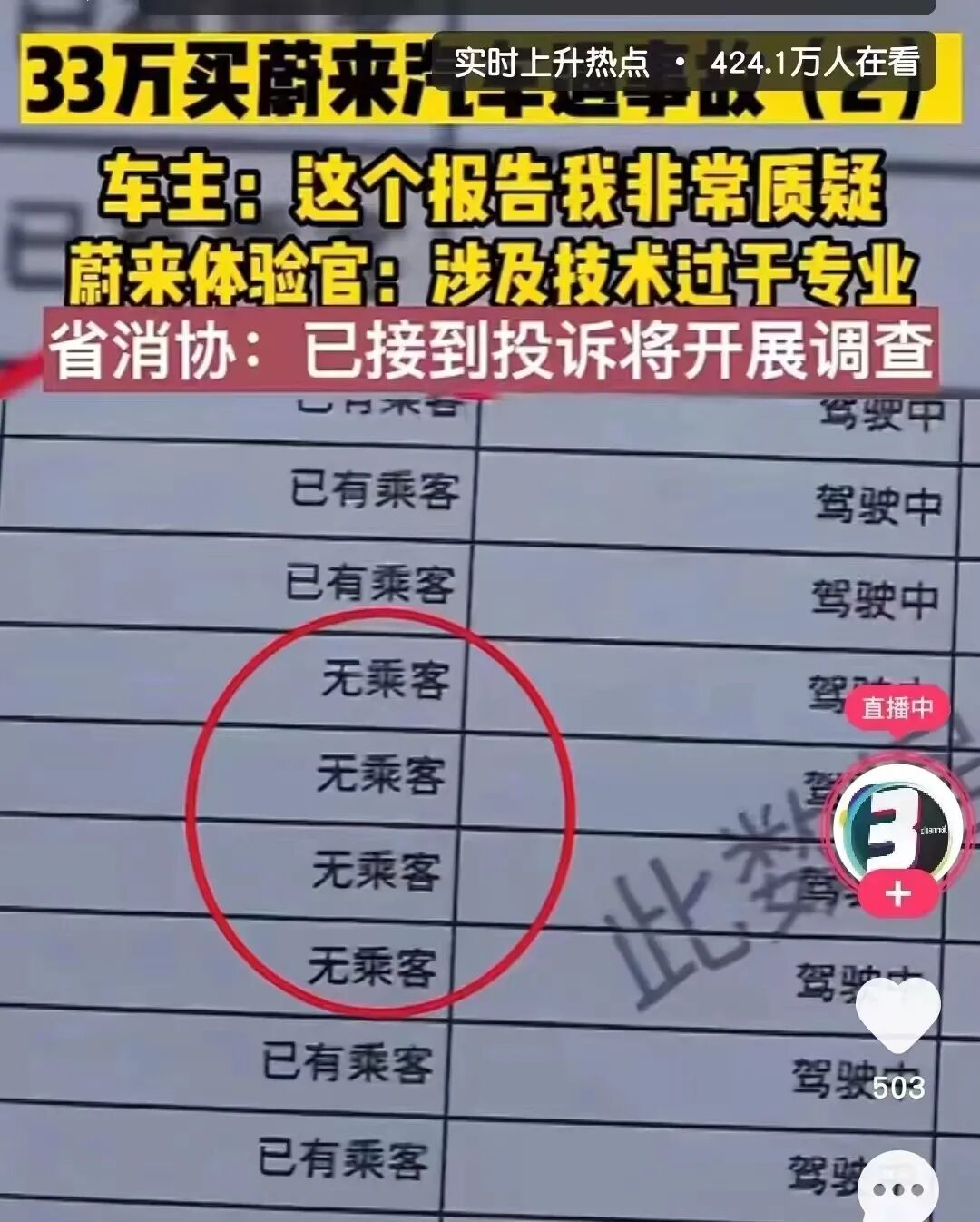 比如蔚来汽车的“无乘客”事件,在那起还没定性的“刹车问题”事件中,蔚来出具了一份数据报告,报告竟然显示有几秒钟车上没人,这简直是离谱,现在这件事也销声匿迹了!