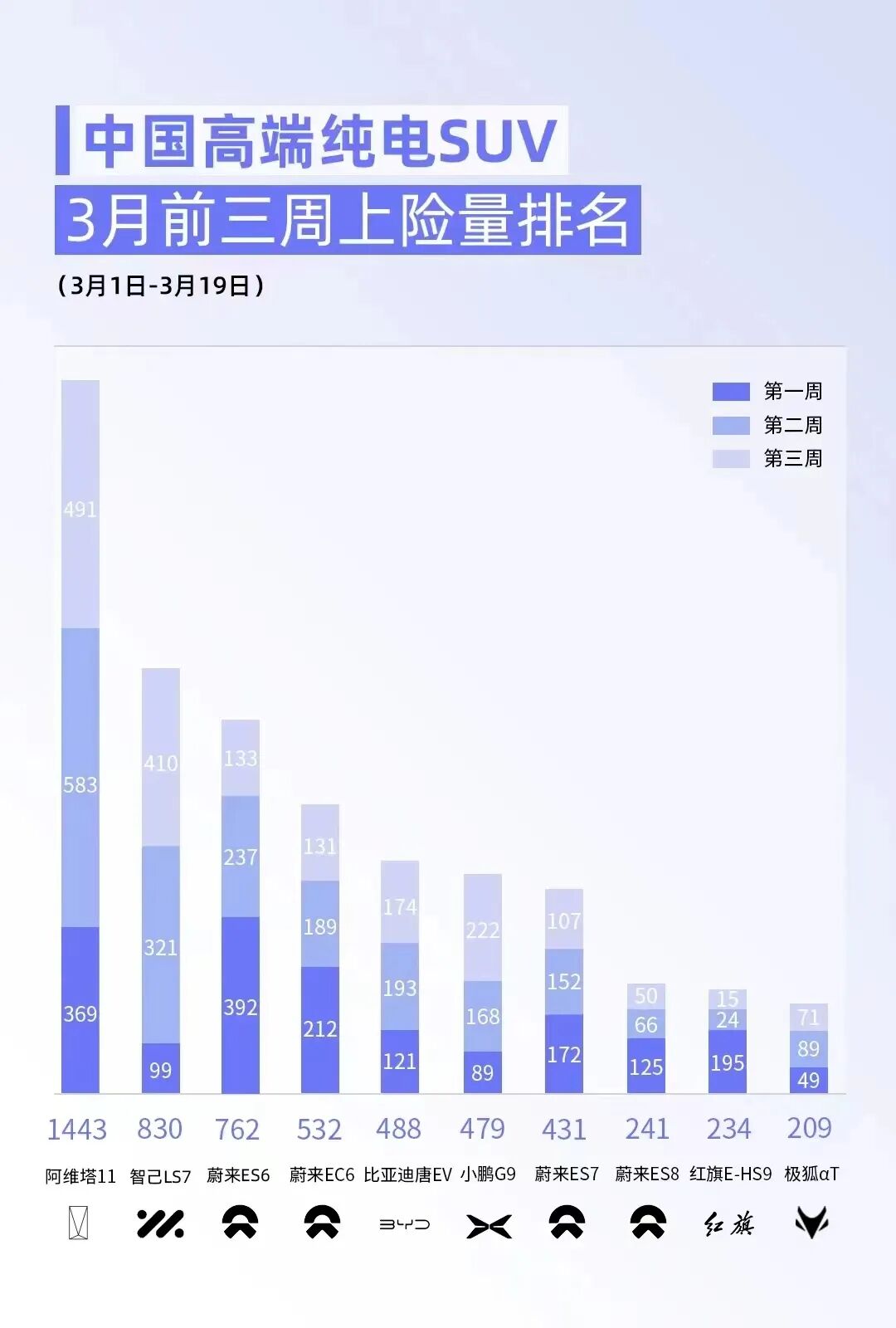 阿维塔称自己三月份前三周30万以上纯电SUV上险量第一,下次阿维塔可以把价格和时间在精确点那么以后就永远是是第一了!