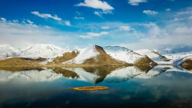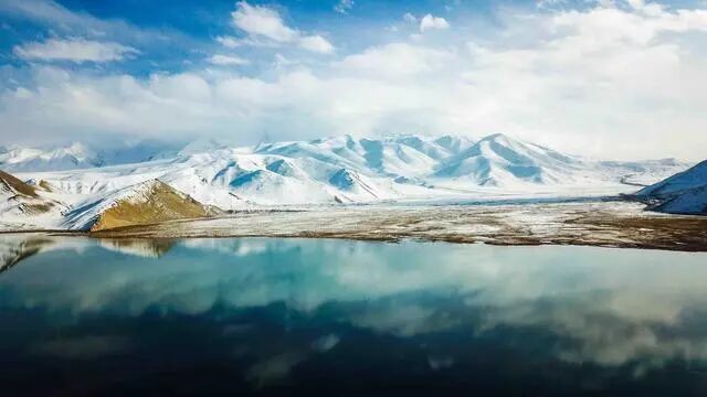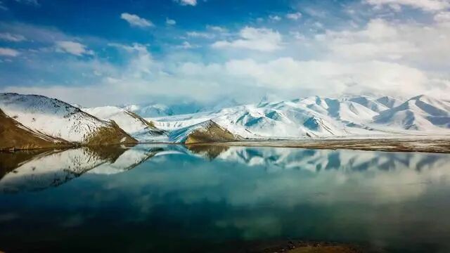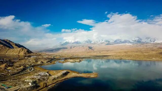 霎那间,慕士塔格峰成为了这片土地上最为耀眼的风景。慕士塔格峰的脚下,依偎着一个名为喀拉库勒湖的高原湖泊。这里清澈洁净的湖水与洁白的雪山交相辉映,看起来如梦如幻。波光粼粼的湖面上还倒映着蓝天白云、高山冰川的影子,好不美丽。