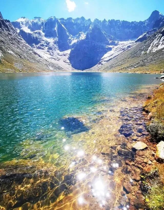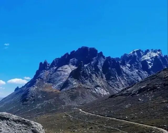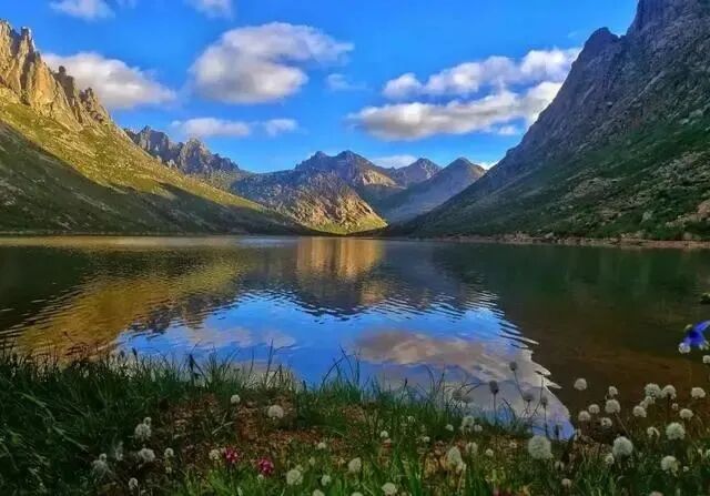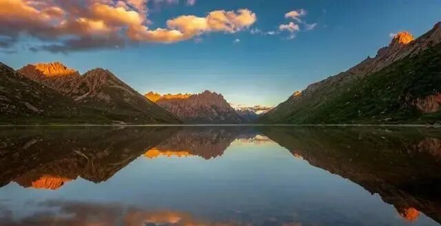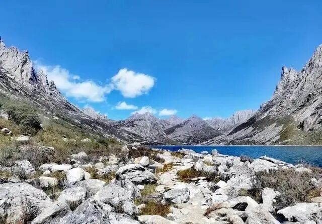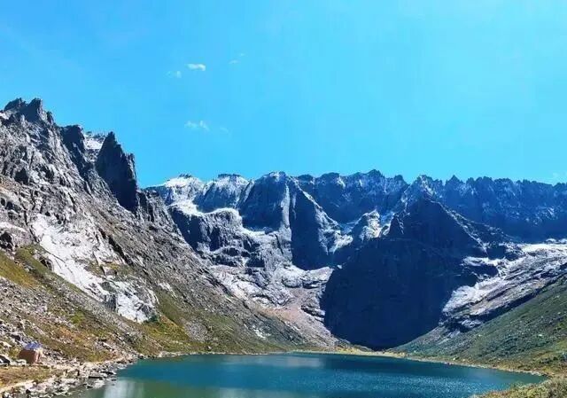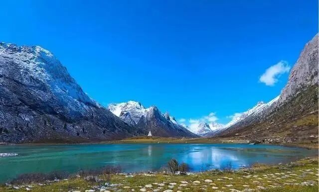 落云措湖泊所在地海拔4150米,面积约0.5平方公里。举目望去,一座高大的牛心石倒映在明镜般的水中~
