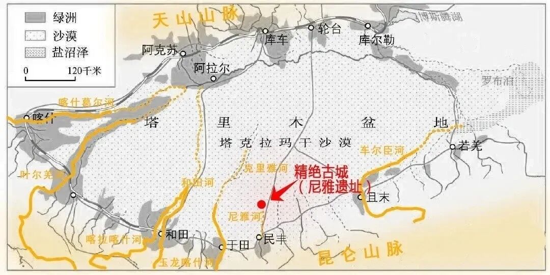 真实的精绝国,是西汉时期中国西部一个比较小的城邦国家,位于尼雅河畔的一处绿洲之上。《汉书·西域传》:“精绝国,王治精绝城,去长安八千八百二十里,户四百八十,口三千三百六十,胜兵五百人。