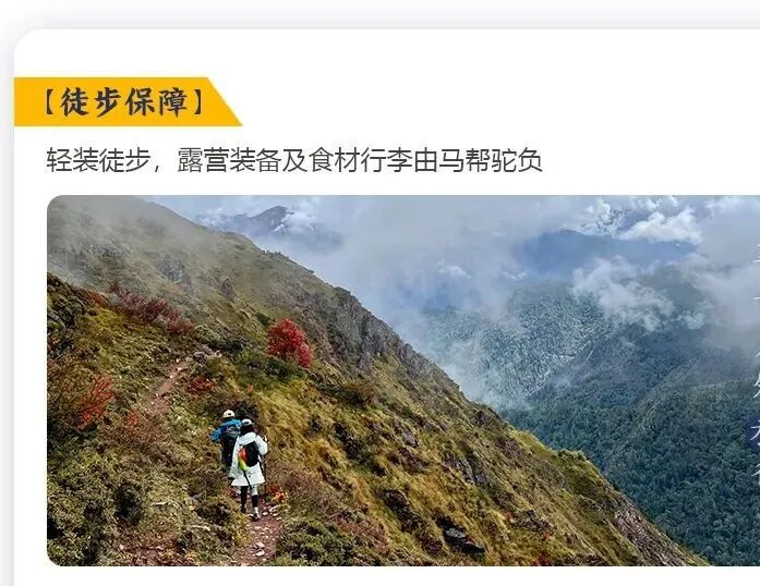 5.行李运输(全程轻装,有车辆或马帮负责公共物资和个人行李运输,贵重和易碎物品随身携带)
