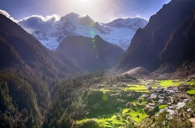 雨崩原本是德钦县云岭乡的一个村子,因地处梅里脚下,四周遍布冰川和雪山,又加因交通问题而几乎与世隔绝,所以偶然被徒步者发现后,成了户外爱好者眼中的“神山圣水下的旷世桃园”。同时,1991年中日联合登山队17人命丧梅里雪山,此后这座神山成为攀登界的禁忌之地,也为距登山大本营不远处的雨崩笼上了一层神秘的面纱。