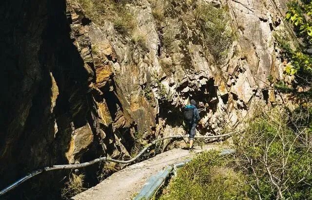 上雨崩与下雨崩两村视野可见,但中间需穿越河谷,所以仍需花大半个小时才能从此村到彼村。从下雨崩穿越峡谷到尼农的徒步线路也是村民出入雨崩的另一条驿道,这条线路海拔一路下降,半天时间即可过尼农到德维公路边,但峡谷中地形复杂,悬崖边的道路让恐高症者望而生畏,即使骡马也仅能驮行李。以上五条徒步线路尽量结伴而行,到神湖的徒步最好有领队或向导跟随。