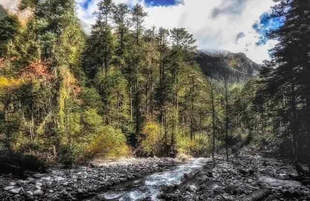 雨崩徒步并非始自现代的外来者,这里长久以来就是梅里内转的必经之地。曾经何时,徒步对于进出雨崩人是日常更是必须,毕竟一直以来仅有两条驿道与这个世外桃源相通。如今越野车也能载着游客进村,村内食宿条件更是今非昔比,但雨崩村仍有淳朴的底色。相比藏区其它神山脚下的干涩,梅里转山路上的自然风光更让人轻松,雨崩依然是许多徒步者心目中的天堂。