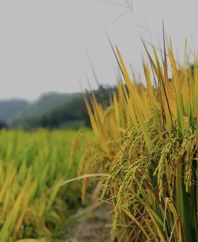 连着块的金黄在曲线的“推波助澜”下,一阵清风拂来,宛如自上而下流动着的金丝带,一层又一层,将丰收的喜悦推向西边的晚霞。