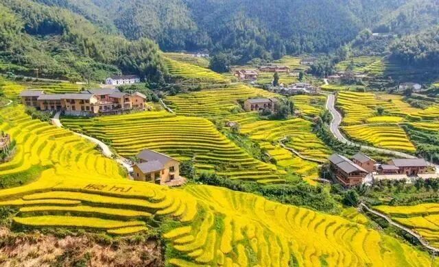 除此之外,零星村落点缀其间,一间间民宿都洋溢着客家乡村风情,若在在这里,择一房而居,携一程秋风,漫步梯田,轻嗅稻香,流连于晨昏之外,静享于悠然之闲,定能遇见更美好的自己。