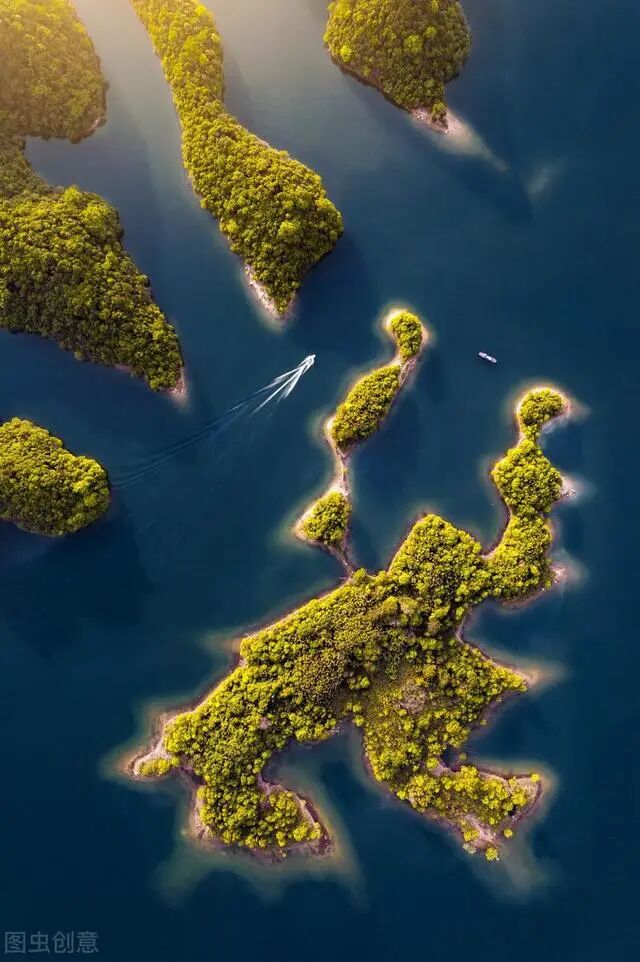 太平湖内分布着许多大小不同、高低不等的岛屿,它们似断似连地飘浮在万顷波澜间,在重重雾气中,远远看去,仿佛是一座座海上仙山,令人遐想联翩。
