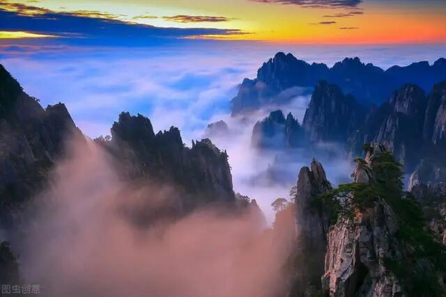 黄山一年之中,有200多天云雾天气,这些云雾,迷住了古往今来无数的文人墨客,提炼出了独有的山水画类型,也诞生了许多脍炙人口的古诗句。