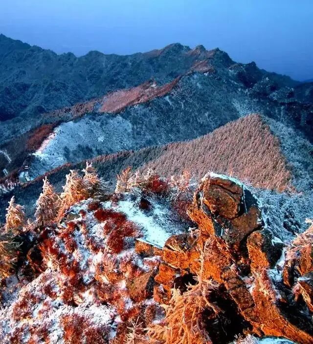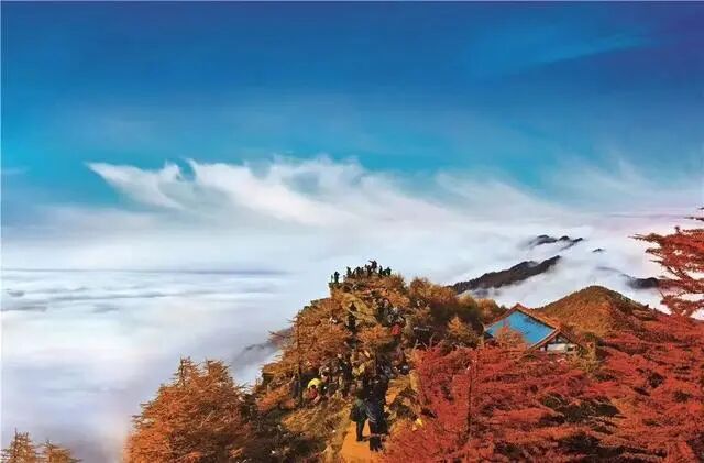 深秋的太白山,五彩斑斓、山峦层叠、河流潺潺、云海浩瀚仿佛人间仙境。太白山的秋雪最是分外妖娆,漫山红桦树叶由绿变黄,再至橙色,层林尽染,在高山之巅映衬着白雪蓝天,像一部秋日的童话般美妙。