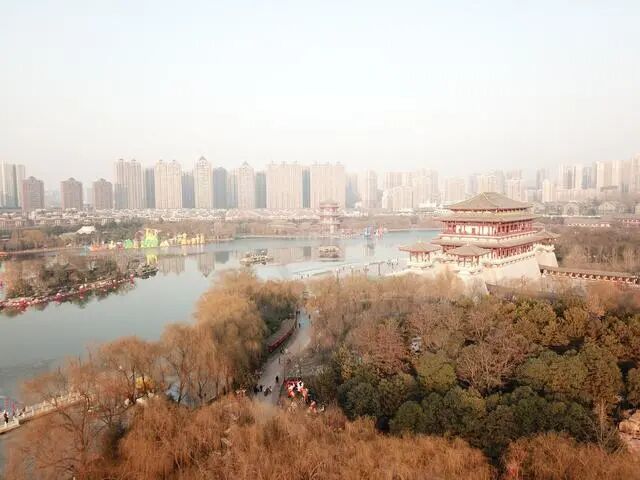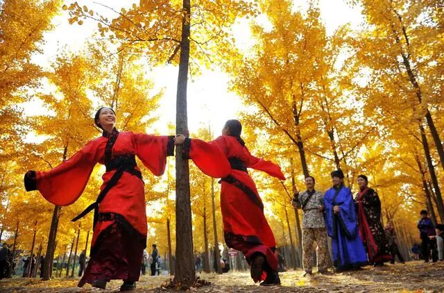 西安大唐芙蓉园的秋有金色的银杏叶、红黄色的枫叶、黄绿相间的柳叶,在皇家园林式文化主题公园里描绘出一幅幅浓墨重彩的秋色美图。何不在金色的银杏林里席地而坐,暖暖的阳光晒在身上,享受秋日的惬意时光。