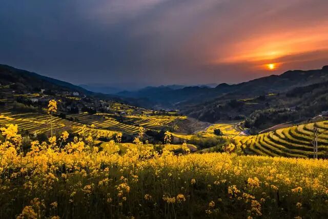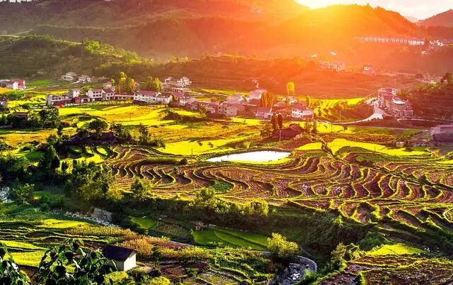 初秋的凤堰一片生机盎然,万亩梯田层层叠叠从山顶次第铺开。放眼望去,稻穗在阳光下迎风摇曳,沉甸甸的稻粒随风跳动,金色梯田随山势地形变化绵延起伏,蜿蜒排列的线条,亦如同大地脉络一般,令人叹为观止。