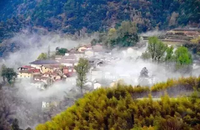 群山翠竹环抱中的村落