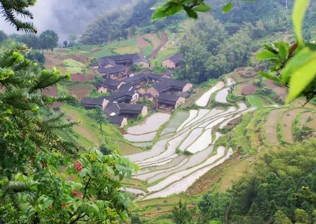 不过从整体来看村庄的发展水平还是落后的,至今还未开通公路,独自隐居在深山老林中,但原生态的景色确实是令人心旷神怡的。村子所处的海拔只有600米左右,被周围群山包围成一个类似盆地的地势。村庄内的山路是纯人工打造的,只有坎坷不平的石阶和泥路,也是人们进出山庄的唯一一条可行道路。