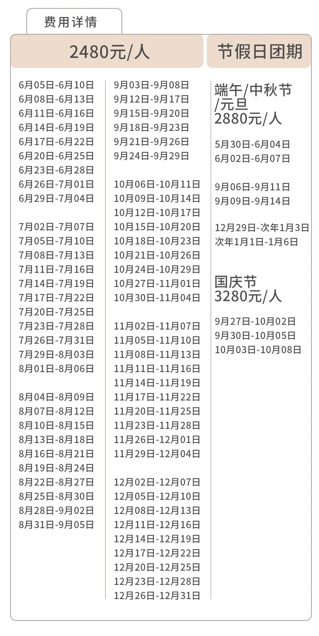 5.向导:随团根据人数配备向导服务,并提供基础拍照服务;