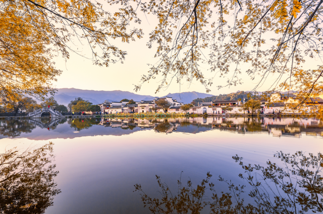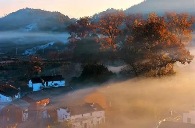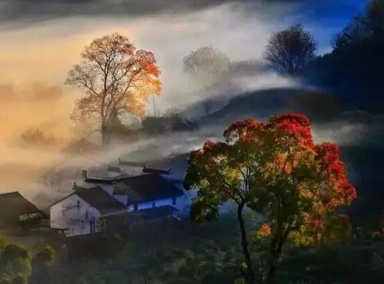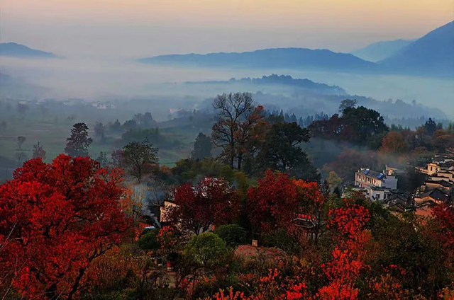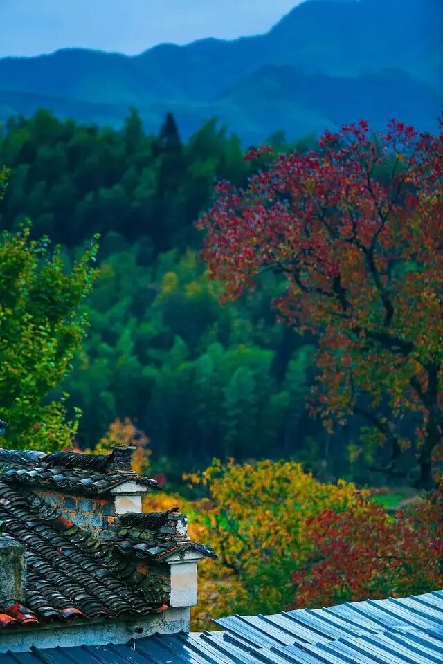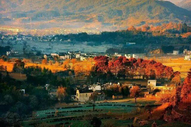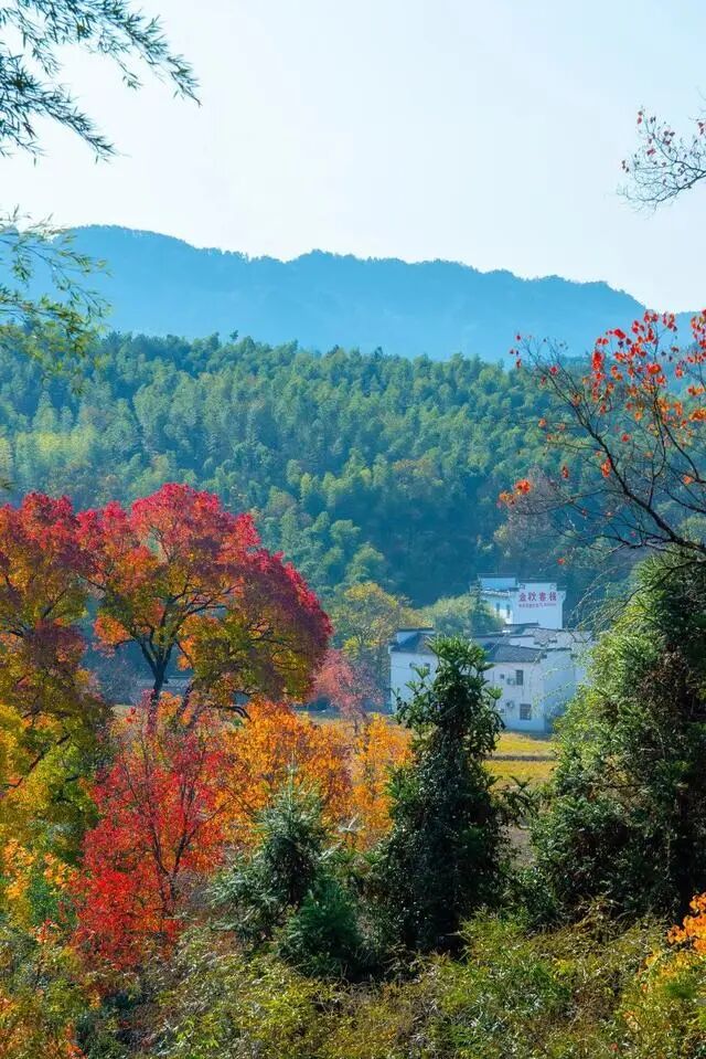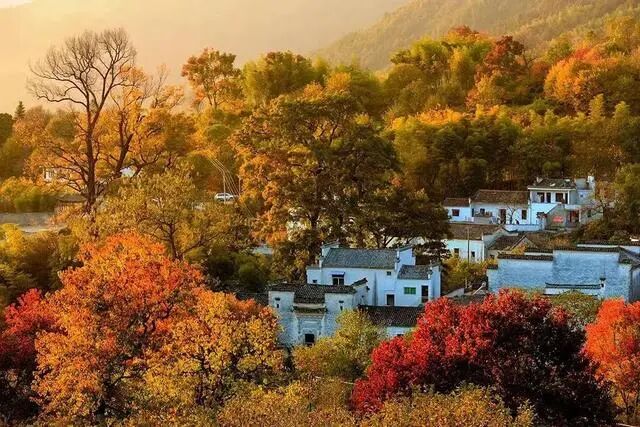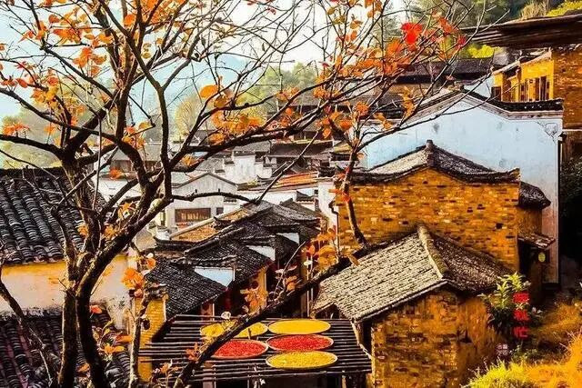 但徽州秋色的重头戏却是在各色人家处,朴素的村落,到了秋天便变了样,各村落的枝叶就开始变黄变红,到了11月中旬,美景就达到了顶峰。