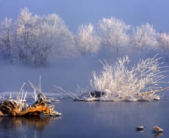 还有绝美秘境——雾凇,一江寒水清,两岸琼花凝。